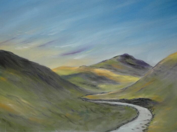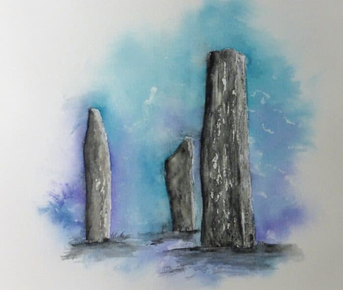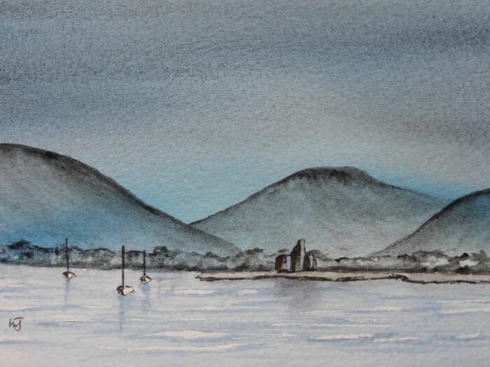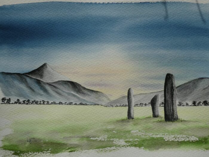 Having trained as an Art Teacher many years ago, Lynn rediscovered her love of painting and all things creative while living in Argyll. Inspired by the scenery, she used pure watercolour to paint the historic landscape of the Kilmartin Glen.