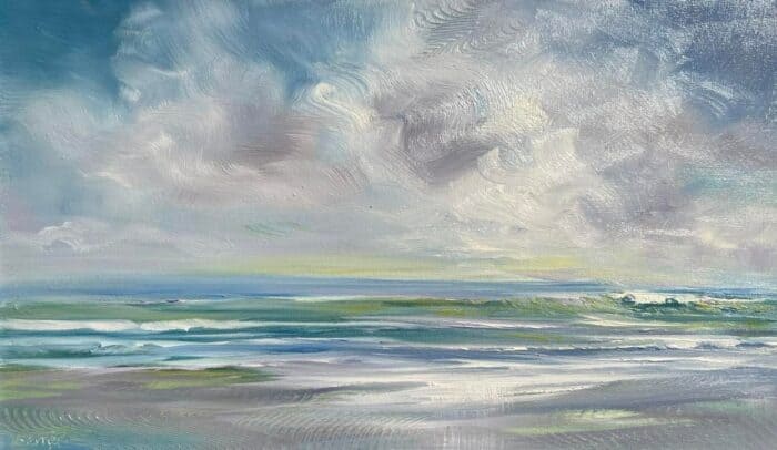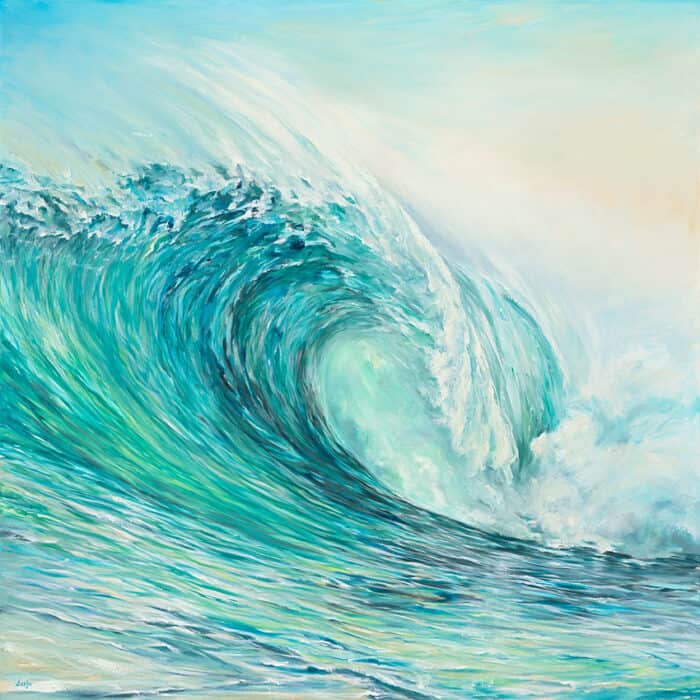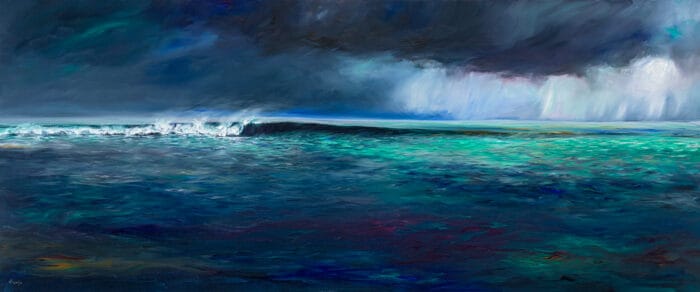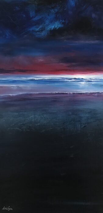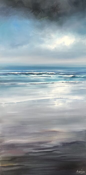 Having surfed, sailed and kayaked over many years, Senja has a deep emotional connection to, and understanding of, the sea. She is passionate about the ocean and has a healthy respect for its many moods. Her paintings may take you on a quiet wander along a peaceful beach or plunge you shamelessly into the heart of crashing waves.