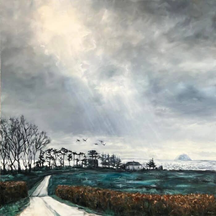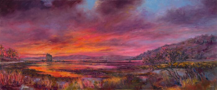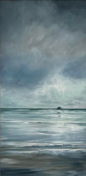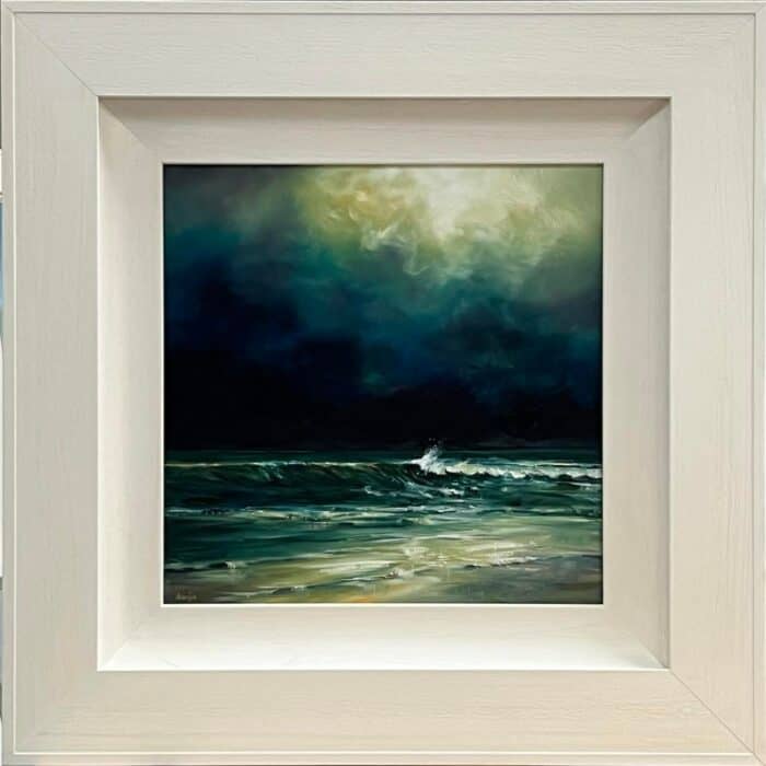 Each painting is created lovingly in a traditional manner, using ‘plein air’ oil studies and real location sketches. Senja travels the Scottish coastline in her mobile studio/campervan and relishes the dramatic light that our varied weather provides. Huge skies and stormy seas are a regular feature in her work.