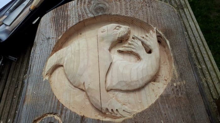 I like to explore new things and this year I have been on a chainsaw course and am learning chainsaw carving as I like to work on large outdoor sculptures. I have also started working in clay as it is quicker to sculpt the piece and change things to decide and plan how I will create the 3 dimensional image that I see suggested in the wood or stone.